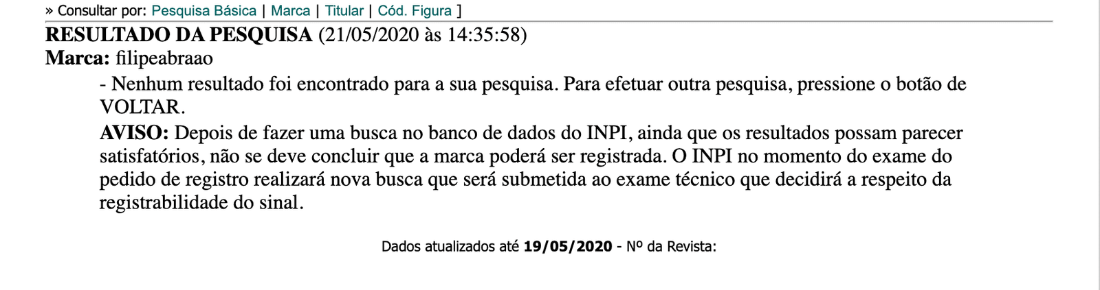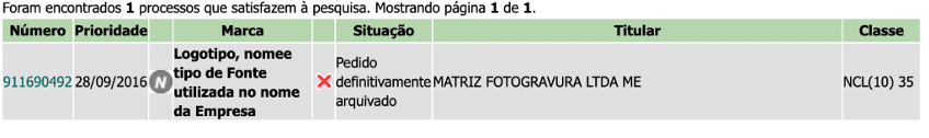 Se o resultado não trouxer nenhum registro de marca, é bem provável que esteja disponível, porém no momento do exame o pedido será submetido a um novo exame técnico.