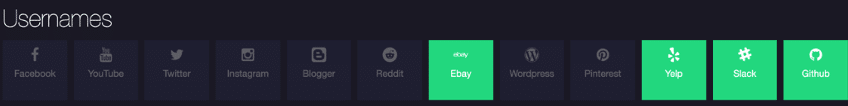 - Após verificar o domínio é possível verificar os Usernames das principais Redes Sociais disponíveis.